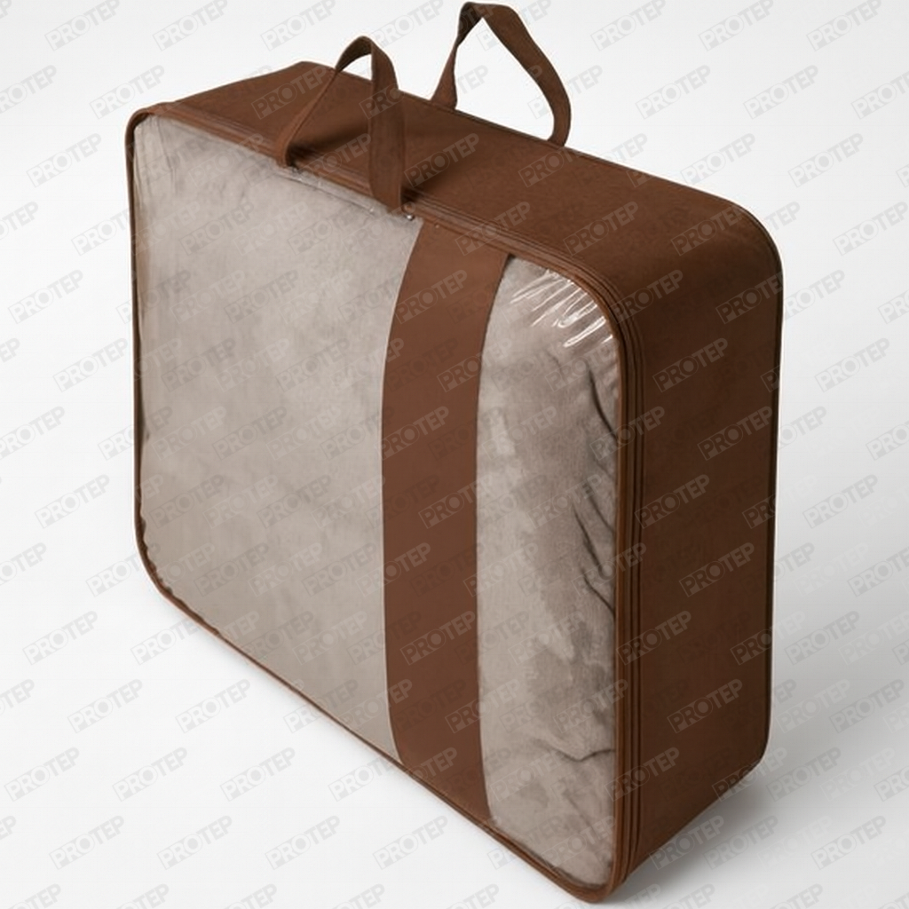Battaniye, yorgan, nevresim ve ev tekstili ürünleri için özel olarak üretilen Nonwoven (Tela) şeffaf PVC’li taşıma çantası, hem koruyucu hem de raf sunumunu güçlendiren profesyonel bir ambalaj çözümüdür. Şeffaf PVC panel sayesinde ürün içeride net şekilde görünür; nonwoven gövde ise hafif, dayanıklı ve ekonomik bir yapı sunar.
